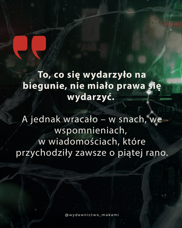 Powieść, którą przedstawiam to emocjonujący thriller, w której autor wykorzystał swoje doświadczenia polarnika by stworzyć historię trzymającą w napięciu i zarazem refleksyjną. To opowieść o traumie, paranoi, granicach ludzkiego umysłu z elementami tajemnicy i fikcji naukowej.
